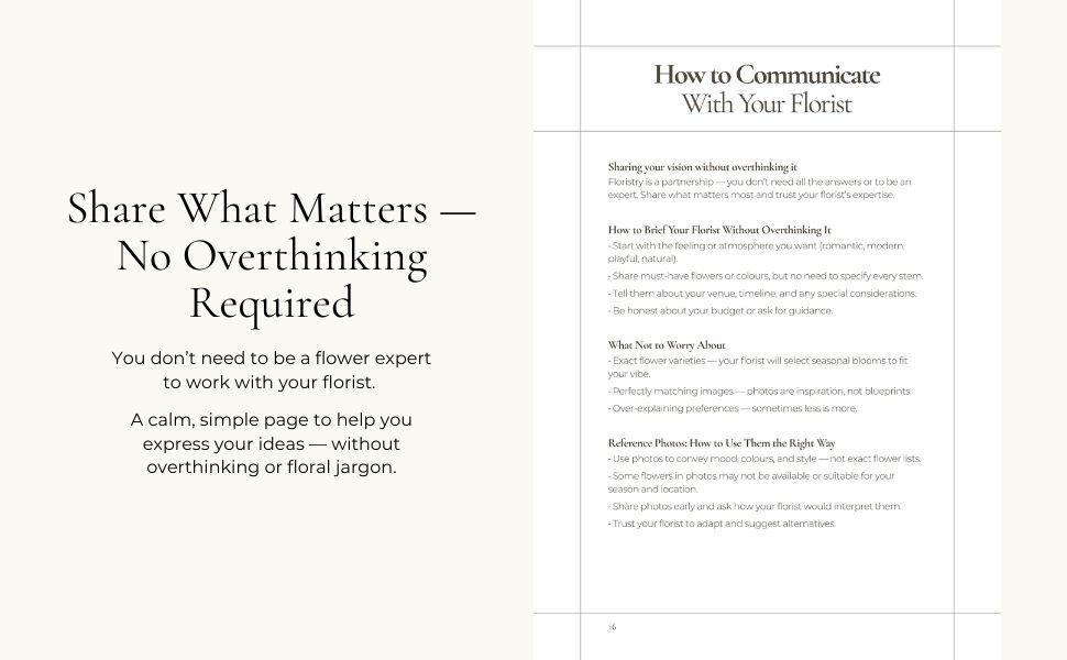 - Gentle prompts to define your mood, colour palette, and floral vibe